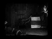 When we last left our heroine, Ruth Hope (played by Arline Pretty) lay gagged and bound to a cot with a spiked stone hanging precariously over her, held aloft only with a burning rope. But rescue comes in the form of another man whose been sent after her for nefarious purposes, who climbs in through a window and shoves the cot out from under the stone. The rope snaps, the stone plummets, destroying the floor and wakening Gordon's henchman from his nap. A struggle ensues....