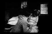 Once again our gal Ruth Hope (Arline Pretty) is in trouble, having just escaped a ruffian in search of the Armory Code which leads to a fortune, she's accosted by two more, hand-gagged and carried off. But our hero Tom sees the abduction and dashes to help, only to get in a scrap with the same thug Ruth has just fled from. After securing the code from Ruth, they gag her and tie her to a chair and rig a rope around her neck attached to the door handle so if some dashing hero tries to rescue her, the rope will tighten and strangle her !!
