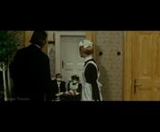 Jana Brejchová plays Gwen Williamsová in this wacky Czechoslovakian science fiction comedy in which two factions in a future world (where women are sterile and grow beards- yikes !! ) decide to time travel backward and murder Einstein before he can develop the atomic bombs that left the world polluted. In the opening bit, Gwen is on her way to begin her mission when she is gassed, paralyzed, bundled up and carried off by a rival faction member. On-board his ship, he unties her and more or less declares she's working for his bosses now. Later an unknown actress plays a maid, who is among the house staff replaced by the would-be assassins, and left gagged and bound in a cubbyhole under the main stairs.