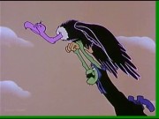 In this clip, The Sea Hag captures Olive Oyl after the pet vulture accidentally gives Popeye her good luck coin with 3 wishes, rather than her bad luck coin. She gags Olive and ties her in a chair, before transforming herself into an exact copy and leaving the vulture to watch over Olive. Olive manages to work her gag off and sings the vulture to sleep.