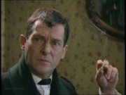 Kika Markham plays Miss Burnet, who reveals to the Great Detective her part in a conspiracy of murder against a cruel Spanish general who murdered her husband. In this clip, a note she was to leave for her fellow conspirators about the man's location is intercepted when she's cleave-gagged with a black knit scarf and later compelled to confess her true identity.