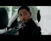 Piper Perabo plays CIA trainee agent Annie Walker. In this episode, troubles at home plus the loss of a crucial package to enemy agents leave Annie feeling uncertain of her abilities and questioning her vocation and so she's blindsided as she steps into the center of a dangerous rivalry between two brothers. In this bit, Annie finds herself being stalked down an alley by a vehicle, which finally passes her by just moments before she's grabbed and captured by one of our baddies. She's escorted at gunpoint to the waiting car, stuffed in the backseat and her hands zip-cuffed to the handgrip above her head. Her bluffs fails, but the timely arrival of the other brother in an SUV takes the heat off of her as the guys settle things physically....