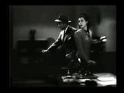 The cops come to suspect a reporter on the crime beat is a mole working for the syndicate and so they set intrepid reporter Vicki Logan (played by Irene Hervey) to keep an eye on him. She shows him a trick for listening in on the commissioner with his own intercom system, but it's really a trick to feed him false information to give to his bosses. he tries to leave on some pretext, but Vicki doggedly tries to stay with him and so he lures her into a supply closet, hand-gags her and ties her to some pipes, and gags her with a white hankie. Vicki struggles fruitlessly and then sets up a nearby sink to flood all over the floor to hopefully draw attention to the closet...