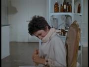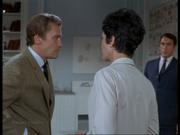 Dana Wynter plays Dr. Katherina Serret in this episode from the classic 60's TV series about a covert alien invasion. In this episode the embassy of a "foreign power" (read Moscow) has unwittingly captured one of the aliens and is performing tests on him, putting the whole place in danger as the invaders are quite willing to blow the building sky high to protect their secret. In this bit, our hero is threatened with a forced plane trip back to the homeland by the ambassador and so he begs for some time alone with Katherina to talk with her beforehand. She excuses the guard and he pounces and hand gags her. Katherina is then left gagged and tied to a chair with cloths so he can make his escape. She manages to scoot her chair over and knock a metal bowl off of a table to raise some sort of alarm and summon help.
