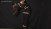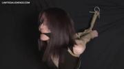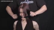 Lastly from Limited Audience (my webhost) comes this clip of lovely lass Blossom Blois, who accepts an intriguing dare to spend a whole night trussed and gagged in an enclosed space. She's soon handcuffed, cleave gagged with a black cloth and then tied up tight, with her arms strappado style up behind her back. Her struggles get her nowhere.