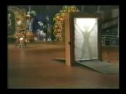 I found this while delving for the ever elusive footage of Cathy Lee wriggling around in a straitjacket on 80's prime-time program That's Incredible. In this variation of the "Transformation" magic trick, Cathy Lee in a daring, tummy-baring spandex outfit is shackled and manacled inside a doorway shaped frame, which is then covered front and back before her partner in the stunt rides a motorcycle through the frame and seemingly switches places with her, as later Cathy Lee emerges waving, all smiles.