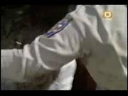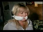 Sandra Kearns plays an aggressive process server named Darla who gets herself captured while trying to serve legal documents against a member of a paramilitary gang with plans to help break their boss out of police custody. While the gang carries out its scheme, Darla is kept gagged and bound in a van in an empty field. Darla struggles mightily but futilely against her bonds, trying to escape. She makes it over to a window and sees two motorcycle cops close by but can't get their attention. She uncovers a cache of smoke grenades and wriggles her way to the front seat, pops a window open and dumps an ignited grenade out the window, finally summoning help.