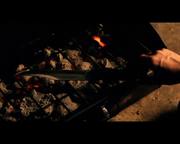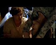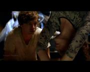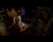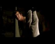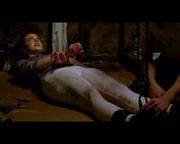 Adelaide Kane plays Nicole in this B horror film, in which a group of college kids are stalked by a killer while on a ski vacation at a resort built on the spot where the infamous Donner Party massacre took place. In this bit, Nicole is caught by the real killer ( who turns out to be an immortal survivor of the Donner Party, cursed with cannibalism ???) and wakes in the cellar with her hands duct-taped in front of her. The killer strings her up by her ankles and readies a bucket underneath to catch her blood, but another survivor arrives to save the day, only to scurry off like a coward... and then returns with a canister of mace and hoses the killer down with it. Nicole is cut down, but as the killer recovers from the mace, she's left to her own devices to get her hands free as the guys settle things physically. Nicole shows the killer the proper use of a baseball bat however.