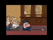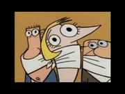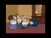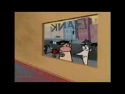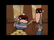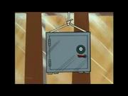 In this bit, a female bank teller is among the hostages bound and gagged by bank robbers, who them put the prisoners under a large safe counter-weighted and strung over their heads. But the cops burst in and one of the robbers cuts the cord.... Fortunately they live to tell the tale when one of the robbers has a change of heart.