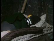 Lorna Yabsley plays Sue Craig in this British TV drama about the kidnapped daughter of a wealthy man, who comes to discover the mastermind of the abduction might just a part of his inner financial circle. In this clip, Sue is brought into a broken down building hooded, gagged, her hands tied behind her. She's forced to sit in a chair and has ear-muffling headphones stuck on her head by one of her abductors. Later she's tied into a loose hogtie on the cot she's been lying on. Things turn bad quickly when the ransom doesn't turn up ( having been stolen by another conspirator) and as father and a friend of his give chase across rooftops, it appears Sue may have fallen in love with one of her kidnappers.