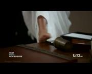 In this episode, Fiona (played Gabrielle Anwar) is put in harm's way when she's asked to help a CIA asset in bringing down a black market weapons dealer, who's apparently selling to terrorists. Unfortunately for her, the girl is the real inside mole selling weapons from inside the operation and turns the tables on Fiona after she cracks the safe inside a secure room. Fiona is zip-cuffed to the handle of the safe and left with a bomb for company before the bitch shoots out the outside lock. Fiona sheds her sandals, fetches a pen off the desk with her bare toes and makes short work of the zip ties, then calls Micheal to let him know what's what. But the bomb itself is rigged and tamper-proof and so her only chance of escape is to somehow get the woman back inside the secure room and force her to disarm her own bomb....