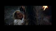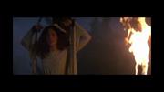 In this fantasy tale, a wizard's apprentice takes on a quest to kill a dragon after a king makes a pact with the dread beasty, offering it one virgin girl a month to keep their crops and homes unburned. Toward the beginning of the movie, Yolande Palfrey plays the first victim who is taken by horse drawn wagon in manacles to the assigned location outside the monster's lair. She's hooded, and her shackles anchored high overhead to a post. The attendants flee as the dragon begins to draw close and the girl for her part removes her hood and tears her wrists badly in a valiant, albeit futile effort to escape being burned to ashes. Later in the film, when its revealed that only peasant girls are being put into the lottery to determine who is sacrificed, Princess Elspeth (played by Chloe Salaman) rigs the next drawing and offers her own life instead. Our would-be hero steps in to save her, but the king's fighter Tyrian intervenes "for the good of the kingdom". Aided by his magical spear, our hero cuts the princess's chains, but her sense of noblesse oblige trumps her sense of self preservation and she throws herself into the dragon's pit to become lunch, while the boys fight it out.