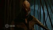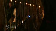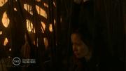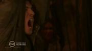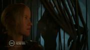 Moon Bloodgood plays Anne Glass and Sarah Carter plays Margaret in this post apocalyptic adventure series about the aftermath of an alien invasion. In this episode, a raid by the resistance goes badly, ending with the entire team being captures and bound and strung up with bio-mechanical tentacles. Margaret is gagged with a tentacle when she yells at alien traitor. An alien infected human girl questions them, using a huge 'cattle prod' to torture the captives if they resist. A 5th column alien group that supports the resistance suddenly attacks and the captives are set free.