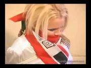 Lovely blond, rope bound and scarf gagged, struggling, short skirt riding high, stockings, black thong panties. What else do you need to know ? Thanks to Bound by Bhowani for providing this clip.