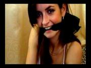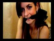 Had a few requests to "find more" of these sort of video clips and viola !! in this clip, a pretty brunette cleave-gags herself with black fabric and them fondles herself.