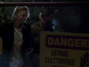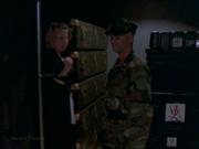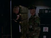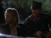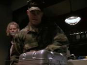 Tracey Needham plays Lt. Meg Austin who is kidnapped by some white supremists who are after a cache of "satchel nukes" kept in a secured bunker. Meg is pulled from a creek after she dives in to save another man shot by one of her kidnappers and afterward, she's handcuffed and gagged with duct tape as they near the base where the devices are kept. Inside the bunker, she's handcuffed to a pipe and coerced into telling her abductor how to finish setting up the bomb before the man shoots his partners and makes his escape...