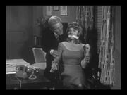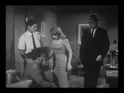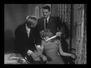 Claudia Barrett plays Jane Cowan, a spitfire of a model who becomes incensed when she learns that some crooks are using her likeness in their advertisements for their phony Mail Order Bride Service to bilk foreign men. She storms into their office and demands re-payment or she'll go to the cops. They grab her, drag her into a back room, gag her and tie her to a chair for safekeeping. Later when one of their clients shows up demanding to get a glimpse of his bride to be, they let her loose so the poor chump can see her and they can squeeze more cash out of him. Jane makes a break for it afterward, but she's quickly re-caught, slapped around a bit and returned to her chair, re-tied and re-gagged. Our hero enters the office disguised as a new client, but the previous client screws up the ruse and a fight breaks out. He gets the better of the baddies just before the cops show up and Jane is rescued.