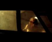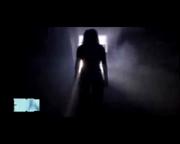 Here and there in this metal video by Celldweller, a barefoot model clad in a "thermal bandages" style outfit (think 5th Element) is seen wriggling with her hands tied behind her or bound with arms outspread to an upright post.