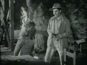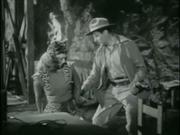 In this episode, Morgan and one of his thugs corner our hero and Tiger Woman (Linda Stirling). he has Tiger Woman taken to a "secret location" and in exchange for her release, our hero has to enter the forbidden temple and convince the natives to relinquish a sacred urn to him (simple, right?). Afterward, Morgan under pursuit by our hero, goes to the mine where Tiger Woman has been kept captive, tied to a chair. He unties her and orders her into an elevator.