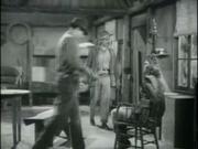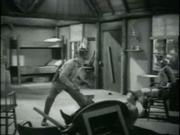 In this episode, Tiger Woman (Linda Stirling) kills one of Morgan's thugs with a spear during a gunfight, but the baddies get the better of her (they have guns after all-- duh) and she's once more captured and hauled off to cabin where she's tied securely to a chair. After some discussion by the baddies, our hero enters and a grand melee ensues. Tiger Woman is set free afterward.
