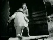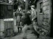 Morgan and a thug are captured and under guard by Tiger Woman (Linda Stirling), but outside a gunfight breaks out courtesy of the other members of his gang and the she goes to help the two defenders. At that moment another compatriot of Morgan's slides in through a window, sets them free and gives them new orders from the boss-- capture Tiger Woman (duh) and destroy a cache of equipment kept in a cave by Inter-Ocean Oil. After finishing off the last of the defenders, Morgan takes Tiger Woman away and later she's tied up in a truck outside the cave while Morgan knocks out the single inept man on duty and lights a long fuse to some dynamite. Our hero arrives in the nick of time and a gunfight ensues. The baddies are forced to flee, but Tiger Woman jumps off the truck and stamps out the fuse before its too late. The grateful man inside unties her hands.