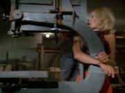 Angie Dickinson plays Sgt. Suzanne 'Pepper' Anderson in this classic police program. In this episode, Pepper goes undercover to find out how young models from a certain agency have a habit of winding up dead. Toward the end, Pepper meets the man behind the scenes, but he's been made wise to her and as she does some snooping in the basement and uncovers the workshop where he disposes of the bodies, he catches her and ties her hands around a floor mounted band-saw. she tries to talk the man down, but to no avail. Her partners arrive to save the day.