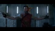 Bingbing Li plays Ada Wong in this latest installment of the action film franchise. Captured by the active remnants of the Umbrella Corporation, she's held at gunpoint with her hands bound in front with high-tech handcuffs to use as rescue bait to get a resistance fighter to surrender in exchange for her life. He gives up and gets shot, but manages to make a return coup-de-grace before expiring. Later, before the final fight scene Ada gets pistol-whipped over the head and knocked out and afterward she's recovered by Leon.
