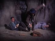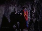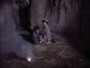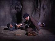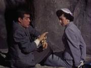 In this episode, Jimmy Olsen and Lois Lane (Noel Neill) are captured by some thugs while checking on a lead about a magic necklace that's supposed to make the wearer invulnerable. Later in the story, inside a cave in India, the crooks leave the pair tied up on the floor side by side with a lit stick of dynamite intended to seal the cave entrance. Superman saves the day before they find out the hard way that the necklace is fake.