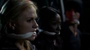 Anna Paquin plays Sookie Stackhouse and Rutina Wesley plays Tara Thornton in this 5th season finale of the ongoing vampire drama series. In this brief bit from the episode, Sookie, Tara and another person pretend to be bound and gagged captives in the back of a pick-up truck so they can get past the guards at a high-tech facility where vampires and other supernatural beings are being held captive.