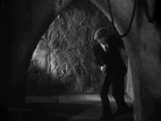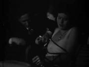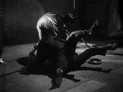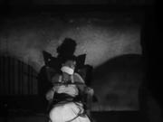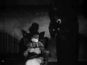 Greta Gynt plays Mademoiselle Julie who finds herself in the clutches of the Hooded Terror and his gang toward the end of the classic detective adventure. Julie initially gets the drop on the fiends, but finds there are no bullets in her gun and is quickly overpowered. Summarily sentenced to death for her treachery, Julie is taken to the "death chamber", over-gagged and tied to a chair with copious amounts of rope to await her doom. but our hero's trusty assistant Tinker has been trailing her, and after getting a thrashing from the baddies, he helps Julie get untied.