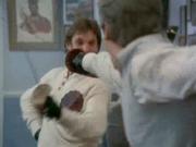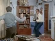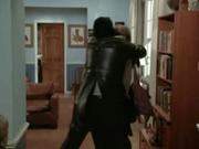 Toward the end of this episode, Amanda King (played by Kate Jackson) discovers who's behind the rash of deaths among the Hollywood elite, when she's hand-gagged and overpowered by a masked man inside a retirement apartment center where Scarecrow has been masquerading as former actor. She's seen strapped to a chair as her captor sets up several bundles of dynamite and demands Scarecrow come to the apartment and face him. The boys settle things old movie style with a swashbuckling fencing match as the fuses are burning...