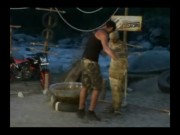 In this clip, three female contestants of the Indian game show Dadagiri (literally, Beat The Bullies) are wrapped snugly from head to feet and made to slog through the mud on their bellies pushing colored balls into a goal on the ground.