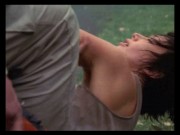 Soap opera veteran Hunter Tylo plays Amelia Lockhart in this dimwitted horror film about a mad scientist who strives to save his son from cancer with shark DNA but instead transforms him into a bloodthirsty shark-man. Toward the end of the film, Amelia and a few other survivors are captured after their helicopter explodes on the landing pad. Amelia wakes up strapped to a gurney, and the madman explains his intentions for them and gives her an injection, which knocks her out. After some random tests and more injections, she's strapped and manacled into a plastic tube in order to lower her over shark-man's tank so he will mate with her. shark-man goes berserk of course, as monsters tend to do just before our rather pudgy hero enters the fray with a backpack full of toxin to kill the thing, and the day is saved.