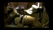 In this bit from a sex comedy about the consequences after a guy sleeps with his best friend's girl, an unknown plays a poor put upon nurse who gets jumped, stripped of her uniform and left struggling gagged and bound to an examination chair by crazy, kinky girl Paula (played by Marisa Tomei), who's come to visit the guy she beat up , who also left her with her hands tied to a chain in just her underwear, during a night of rough sex.