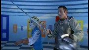Gigi Edgley once more plays Chiana in this episode in which Chiana challenges bored Earthling John Crichton to join her in a virtual reality game, which quickly turns into a surreal nightmare where they must confront twisted versions of themselves. In this bit, John and Chiana warp into a brightly colored feasting hall where one crew member seems to be dining on food coming from an open hole in another's stomach, and a second Chiana appears crouching on a table with her hands tied behind her, and gagged with an apple. john is attacked and sets the other Chiana free who then helps him fight off the attackers.