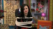 Demi Lovato plays Sonny Munroe who in this clip tries to get rid of a troublesome studio brat in her own sweet kind way and is later found tied up with thick rope to the dress-form dummy in her dressing room by her co-stars.