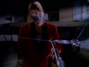 Allison Hossack plays Danielle LaPointe in this episode in which a vengeful ex-soldier kidnaps her from her office in order to bait a trap he's set for our hero whom he blames for the death of his wife. At a distant cabin, Danielle is tied to a chair as the baddie records an exchange on tape before gagging her with duct tape. All points of entry are linked to a shotgun aimed at Danielle, so no matter which way the heroes enter, she dies. Meanwhile, our heroes pick their way through a forested area littered with death traps...