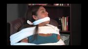 Miranda Grant plays Allison in this student film project in which a young woman's psychotic room mate has just killed her boyfriend and has Allison gagged and tied in a chair with torn sheets. Ellen raves about what she's done for Allison's behalf and finally puts a knife to the struggling girl's throat. Allison whimpers through her gag...