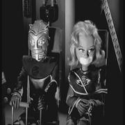 In this pilot episode of the science fiction adventure series starring marionettes, Dr. Venus (voiced by Sylvia Anderson) is struck from her rocket cycle by a blinding flash and knocked unconscious by the fall by some nasty subterranean aliens on planet 46. Our hero Steve Zodiac is then compelled to order his main spacecraft to land on the planet's ashen surface, so it will become stuck and no longer able to interfere with the aliens plan to destroy the earth with an atomic rocket. Venus is shown bound and gagged aboard the rocket as an incentive. the aliens double-cross him and Venus isn't freed. During the launch, the rocket develops problems Steve uses the distraction to snatch a spare ray gun from a hidden compartment and stuns all the aliens. He kidnaps the leader and uses him to force the alien holding Venus to set her free.