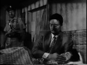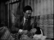 Kam Tong plays housekeeper named Sui who is kidnapped by some unscrupulous relatives to a boy who has suddenly become a heir to vast fortune after his parents are killed, as she's the only person who can reveal the aunt come to claim the boy is a fake. In the first bit, she's seen reclining on a bed in the crooks' apartment, tied hand and foot as well as gagged over the mouth. She's carried off to another room and watched over when the cops get too close, but the ruse is quickly uncovered and a fight ensues.