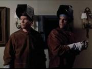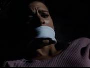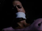 Susan Constable (Perrey Reeves) has the misfortune to witness some crooks planning a jewel heist after a crossed-up cable connection links her to a closed circuit camera feed. She gets kidnapped by the gang, and is later seen tied up on the floor of the van, hands in front, gagged over the mouth with a large white cloth. As the crooks commit the robbery, the woman accomplice has a crisis of conscience and lets her loose.