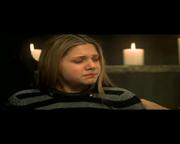 Lauren Collins plays senator's daughter Megan Morrison who is kidnapped by some thugs as electrical mutant Brennan lose control of his powers. She's later seen tied to a chair in the hideout as the lead baddie makes his ransom calls. Afterward, he gets a sense the senator might try to trick him and locks an explosive collar around Megan's neck. Our heroes send the senator's security chief in to make the exchange (since he was in on the plot to begin with) but things quickly go awry and the team has to break in. A fight ensues and the lead baddie keeps the heroes at bay with the remote to Megan's collar...