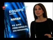 In this French incarnation of British game show in which contestants are challenged to sing while various 'distractions' are in play, a Céline Dion look-alike named Nayah is blindfolded and strapped to a revolving wheel as knives are hurled at her by a professional knife thrower, as she attempts to sing "My Heart Will Go On".