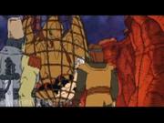 On a distant planet, the Loc-Nar (the total sum of all evil taking the form of a green jewel every creature covets) falls from the sky like a meteor and transforms a tribe of wanderers into genocidal madmen, bent on domination. After a mass slaughter, a silent swords-woman Taarna, the last of a race of defenders arises to challenge the menace. After securing information where the barbarians can be found, she and her winged mount are netted and captured. Taarna is presented before the leader naked and bound to a complicated rack as her bird is tied down and shot at for the villains' amusement. Later, disposed of in a deep pit, Taarna awakens and dons her armor when it is cast down to her. The bird escapes and carries her away.