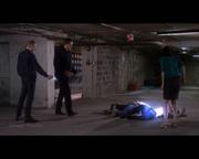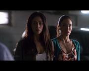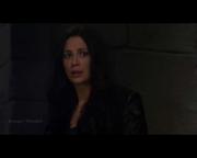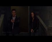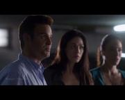 Double crosses abound in this first part of this 3rd season climax in which a baddie named Walter Sykes seeks to destroy the Warehouse 7 and recover an bracelet that will allow him to walk again (even though it slowly turns the user irredeemably evil). The first part of his plan involves recovering former baddie H.G. Welles, now called Emily Lake (played by Jaime Murray) after her mind is wiped by another artifact (sort of like a Warehouse 13 version of "Witness Protection"). After a fight, Myka Bering (played by Joanne Kelly) and her partner are knocked out and Emily is kidnapped from them. She's later seen with her hands zip-cuffed behind her, seated in a chair being interrogated, but because her mind has been wiped and re-programmed, she can't answer their questions. Later in the episode, Claudia Donovan (played by Allison Scagliotti) gets a tight hand-gagging by a WH13 agent who has betrayed them, as he explains what he's really been doing.Download the Clip