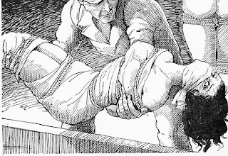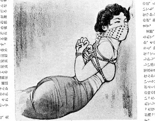 It's stunning what you can dredge up from the lower depths of th net if you look. Found in my wanderings, some traditional Japanese bondage art, book illustrations, even a Manga scene.